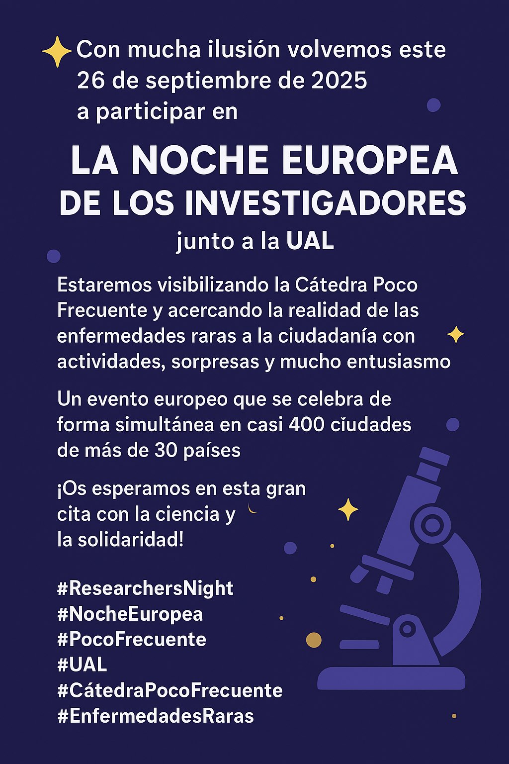#ResearchersNight #NocheEuropea #PocoFrecuente #UAL #CátedraPocoFrecuente #EnfermedadesRaras #CienciaCiudadana