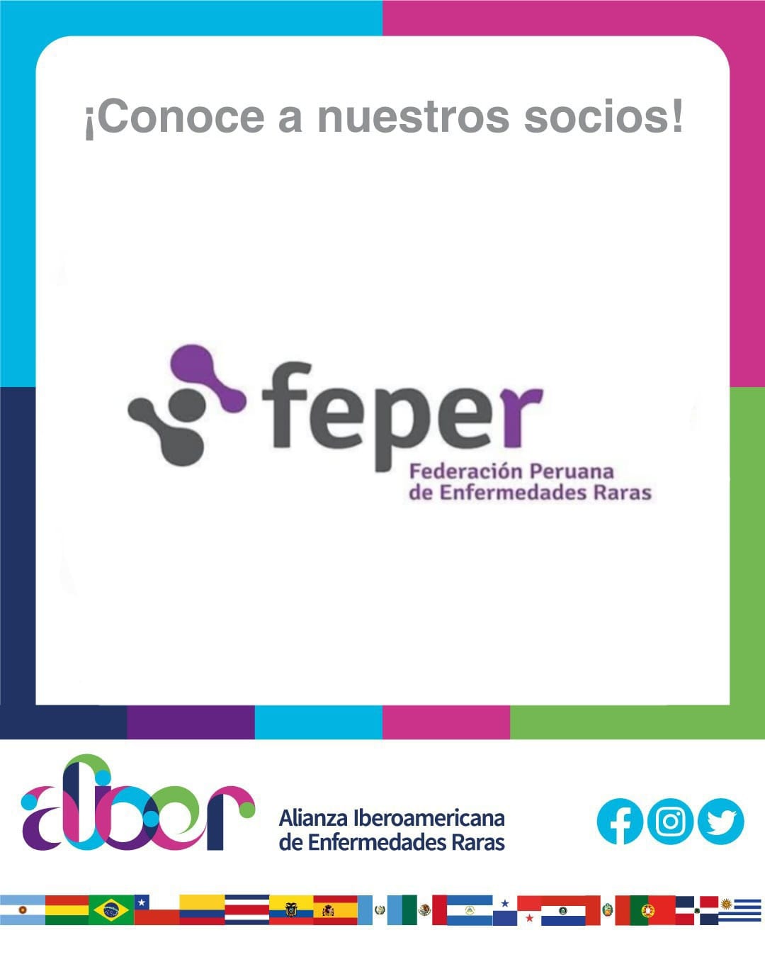 Somos una red que agremia más de 700 organizaciones de pacientes con Enfermedades Raras, presente en 19 países de Iberoamérica, que coordina acciones para fortalecer el movimiento asociativo, dar visibilidad a las EERR y representar a las personas con Enfermedades Poco Frecuentes de Iberoamérica ante organismos locales, regionales, nacionales e internacionales, creando un espacio de colaboración conjunta y permanente para compartir conocimientos, experiencias y buenas prácticas en las áreas social, sanitaria, educativa y laboral.