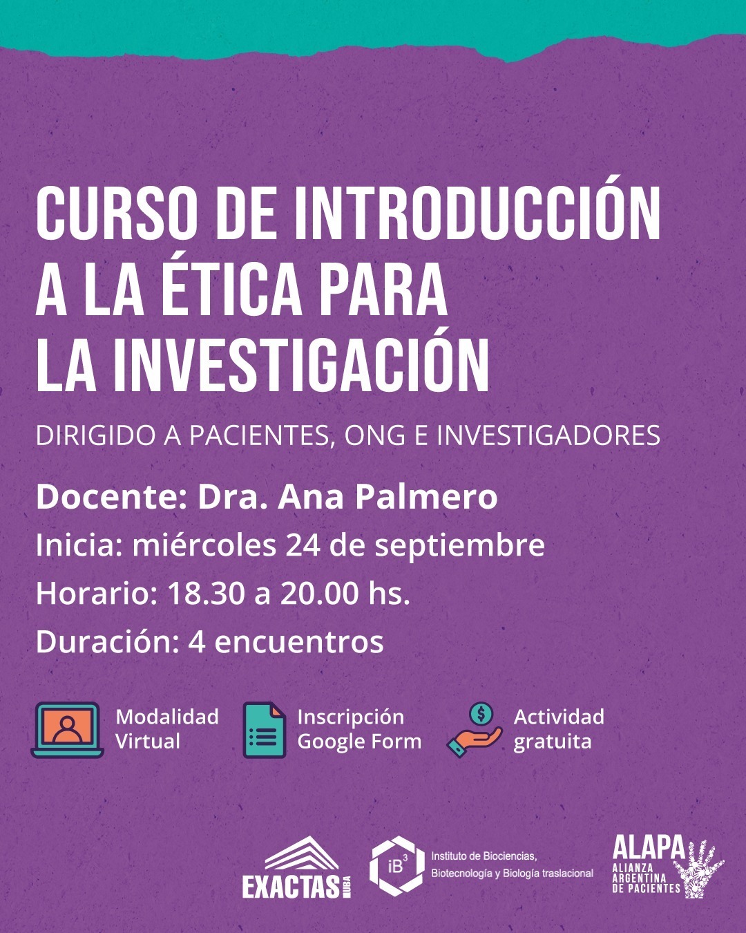 Curso de Introducción a la Ética para la Investigación, para Pacientes, ONGs, Investigadores y Docentes